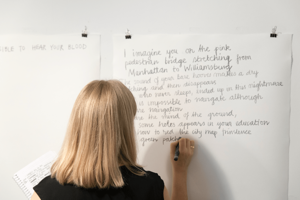 In November 2018, Ensayo #4 artist Randi Nygård visited the studio of The Institute of Urbanism and Landscape at AHO, The Oslo School of Architecture and Design to present the book Dei viltlevande marine ressursane ligg til fellesskapet / The Wild Living Marine Resources Belong to Society as a Whole.